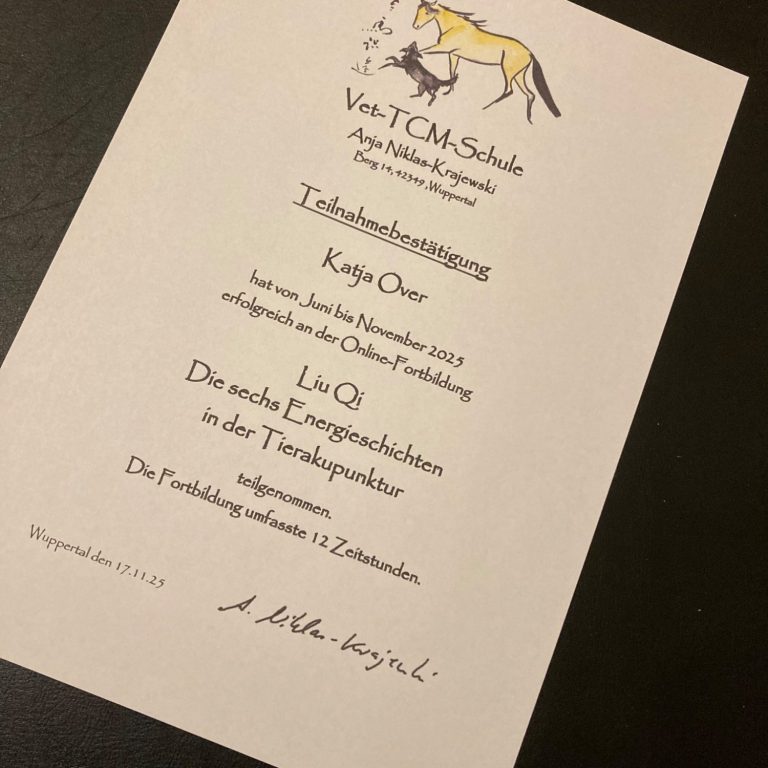 Im April 2026 startet die Ausbildung für die TCVM Hundeakupunktur. Wenn du dabei sein willst oder Fragen hast, schreib mir gern eine Mail an mail@tierische-balance.de